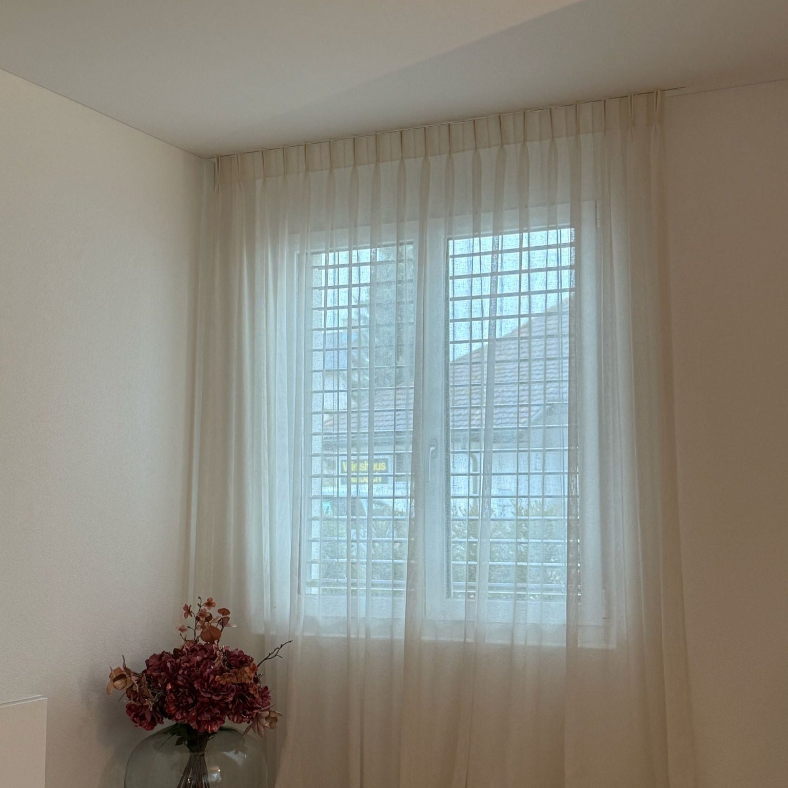- Kontrolliere, ob der Vorhang gleichmässig hängt und sich leicht bewegen lässt.