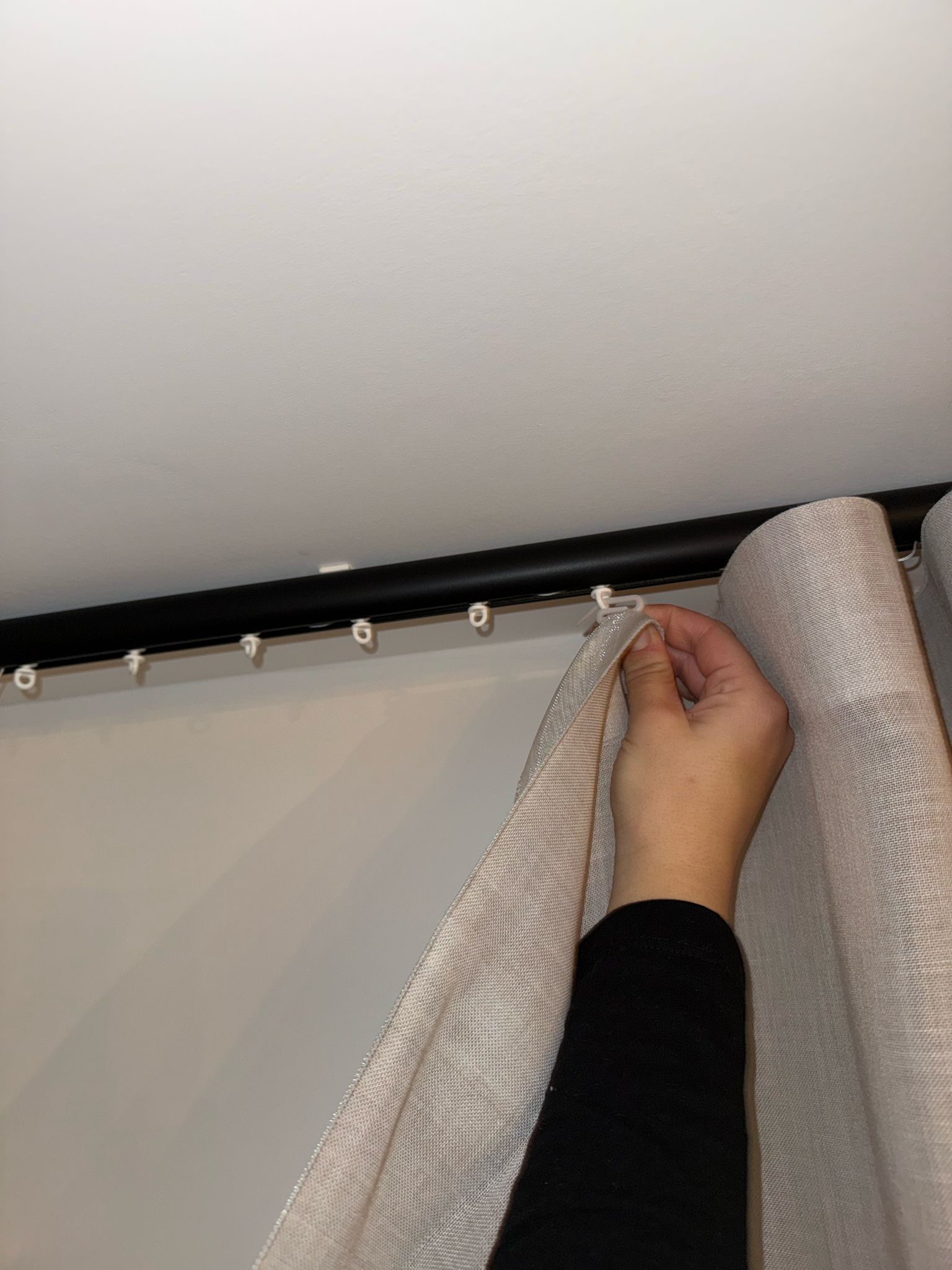 - Überprüfe, wie viele Haken am Vorhang befestigt sind.