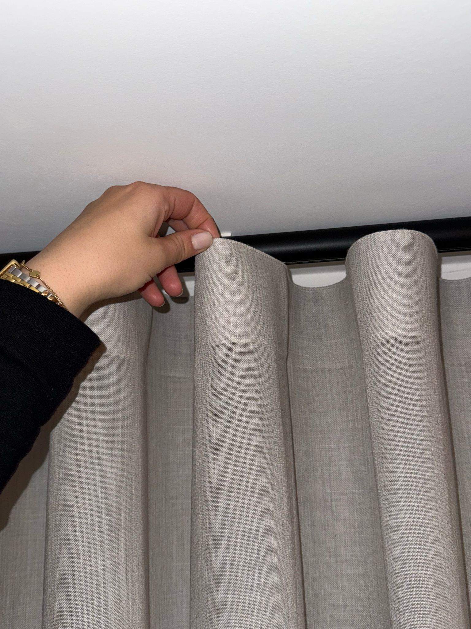 - Achte darauf, dass der Vorhang gleichmässig verteilt ist und sich die Falten schön formen.