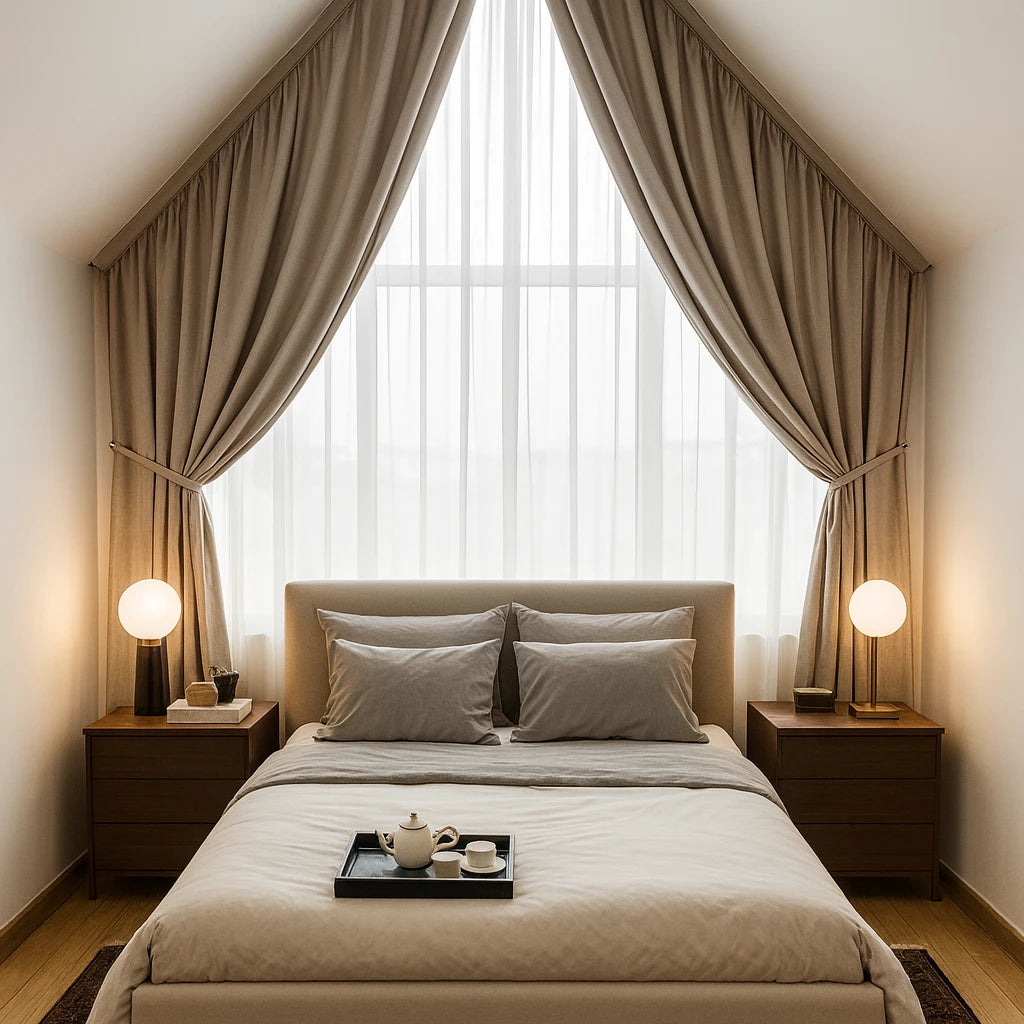 Ob hohe, schräge, hellende oder unregelmäsige Fenster, wir bieten massgeschneiderte Vorhanglösungen für jedes Fensterdesign. Besonders bei hohen Fenstern sind wir einer der wenigen Anbieter, der sich auf diese Herausforderung spezialisiert hat. Unsere Vorhänge werden präzise auf die individuellen Anforderungen abgestimmt.